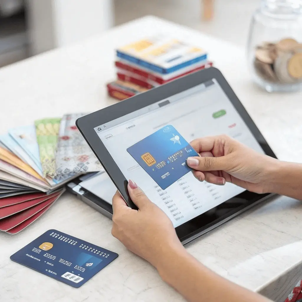 Small balances across several cards are consolidated into one payout that covers textbooks.